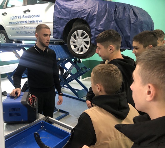 - Ранняя профориентация школьников8 ноября в стенах Белогорского технологического техникума прошел очередной этап профессиональных проб «Билет в будущее» для школьников Белогорского района. Сегодня ребята познакомились с тонкостями и особенностями профессии «Мастер по ремонту и обслуживанию автомобилей». Учащихся...